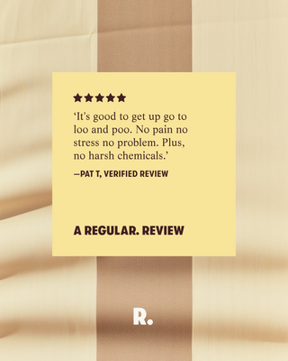 ‘Since having a high protein diet I’m often constipated but We Are Regular has changed that. I feel so much lighter and i'm in a better mood! The ultimate test though was during my period, I have endometriosis particularly around my bowel and pooing is impossible and so painful during my period. I couldn’t believe that it kept me regular and pain free, honestly life changing.’